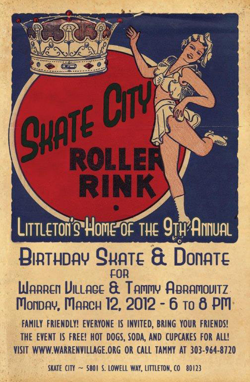The 2012 Annual Skate & Donate party will take place on March 12 at Skate City in Littleton and everyone is welcome.