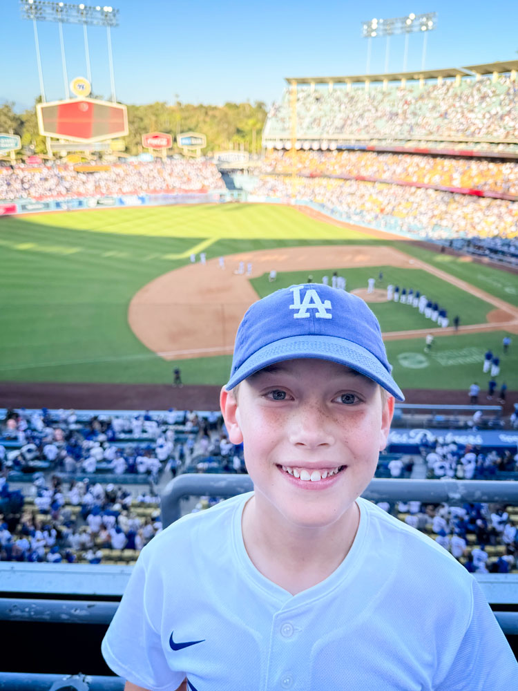 Dodgers fan Noah Swant at his first game at Dodger Stadium.