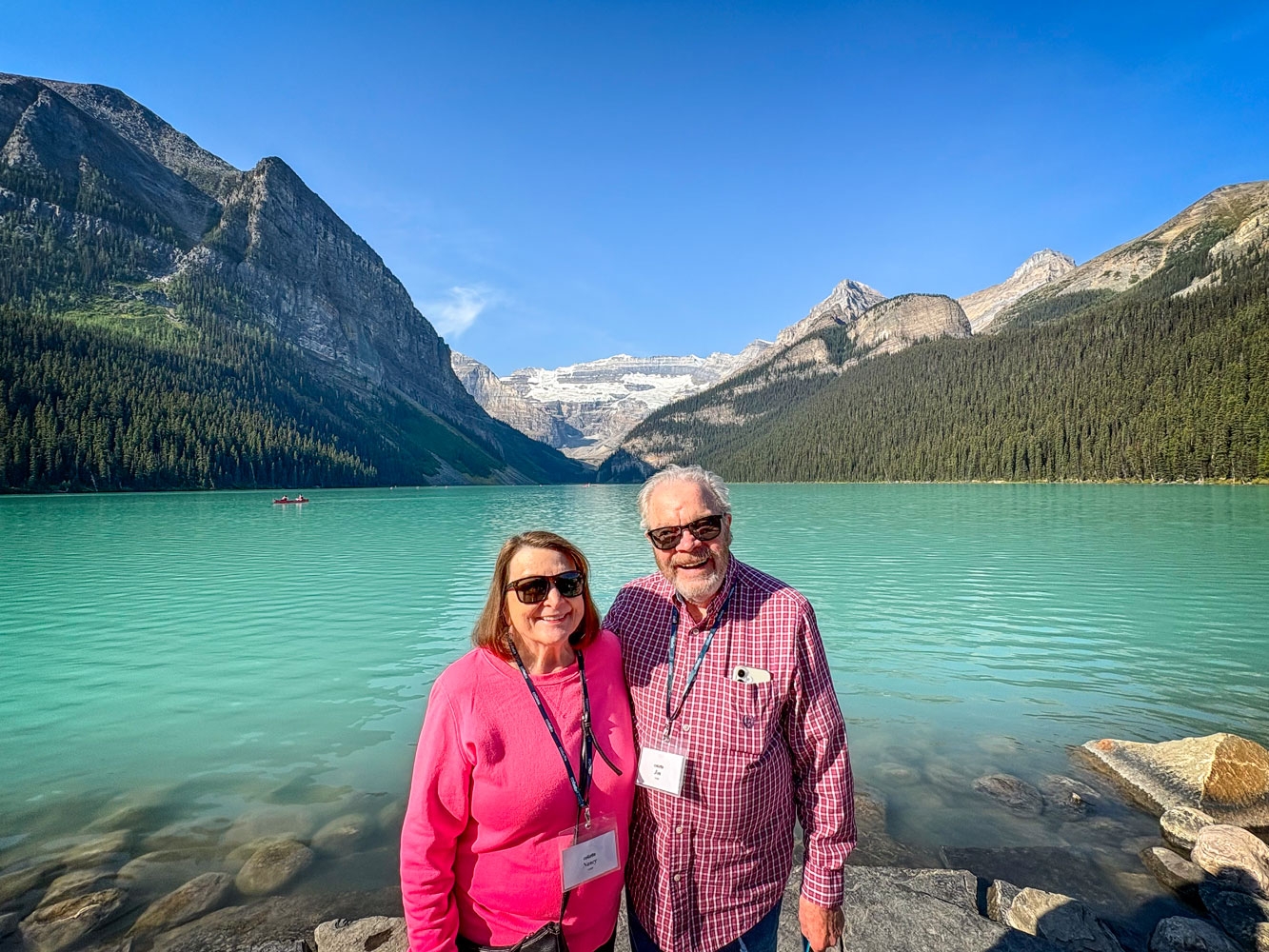 Nancy and Jim Yank in Fairmont Chateau Lake Louise in Alberta, Canada. They rode the Rocky Mountaineer train from Vancouver, British Columbia to Banff, Alberta.