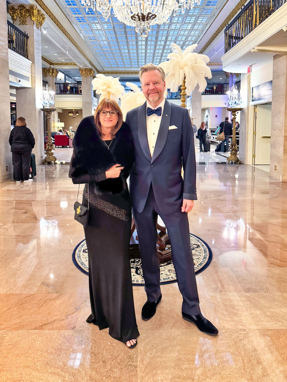 Jodi and Robert Stevens in formal wear at the Mayflower Hotel in Washington, D.C., last year. The couple attended The Order of the Crown in America’s annual meeting and dinner of Charlemagne descendants.
