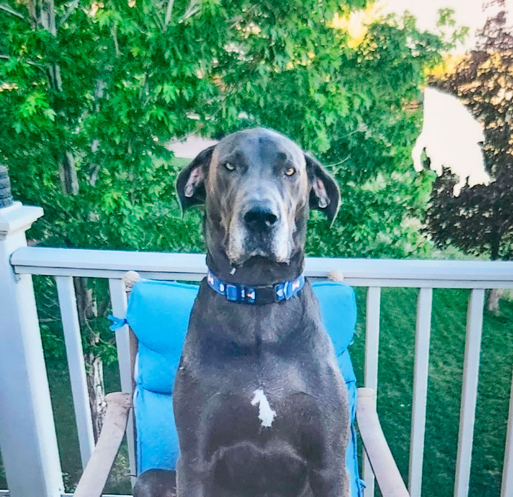 Kramer sitting in his favorite patio chair on the Brown’s back deck in 2023.