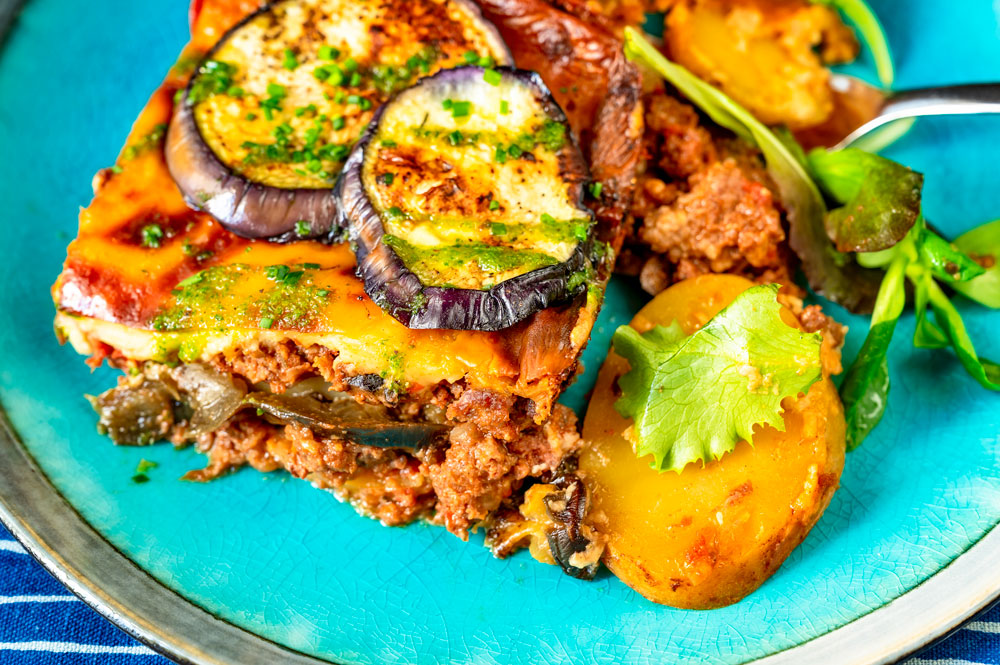 Moussaka is a classic Greek dish, much like lasagna, that includes layers of eggplant with a meat sauce and creamy cheese sauce.