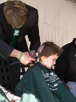 Drew Webster (4) shaves his head for the second time in support of the St. Baldrick’s fundraiser and his sister Bella (3) who is is remission from leukemia.