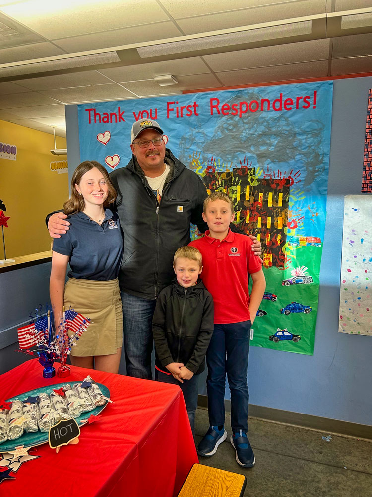AA students and siblings stand proud with their father Alvin Lamle, a firefighter from South Metro Fire Rescue. Clockwise left to right: Makenzie, Alvin, Asher and Alvin Jr.