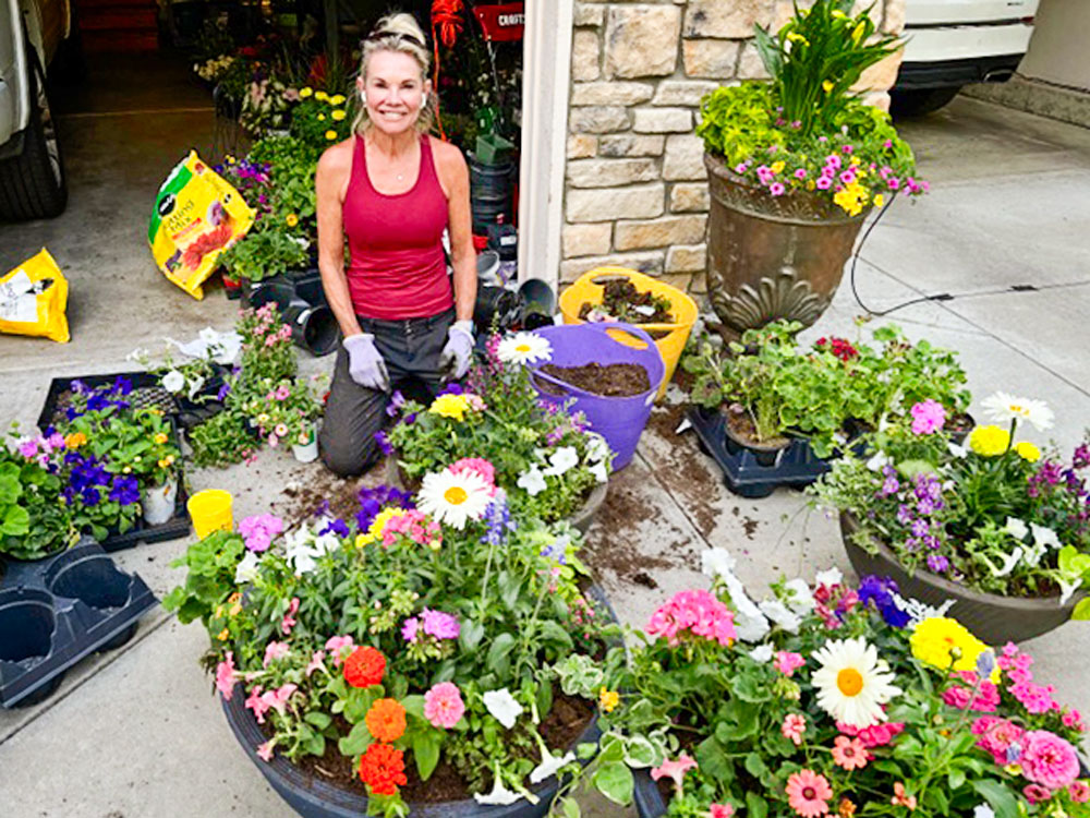 Cindy Egitto creating beautiful flower arrangements in front of her home.