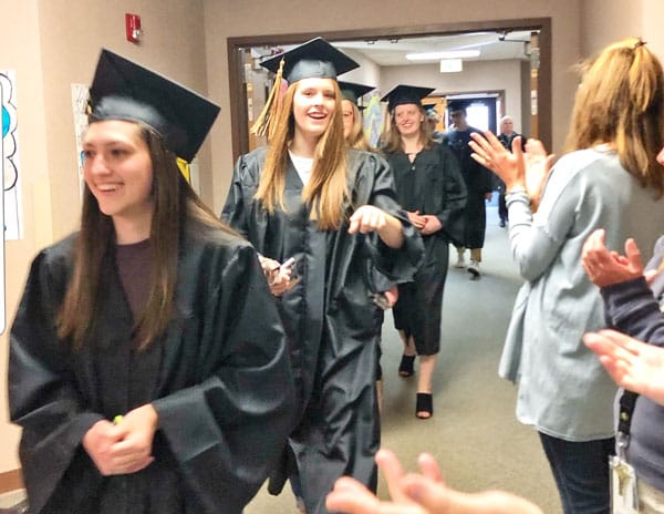 Wearing caps and gowns, the Rock Canyon High School (RCHS) graduating class of 2019 had the honor of being the first class to make the inaugural “Senior Walk” through the halls of their respective elementary schools.