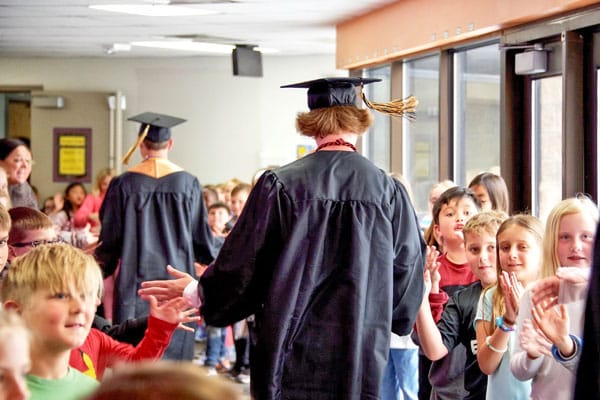 Patti Hickey, a parent at RCHS and a member of the School Accountability Committee was inspired by a news story that aired on ABC. A high school in Texas decided to have the graduating seniors, dressed in caps and gowns, return to their elementary schools and walk through the hallways. The intent was to show the students in the younger classes the fruits of the seniors’ labors, in addition to putting a face to the dream of going on to college.