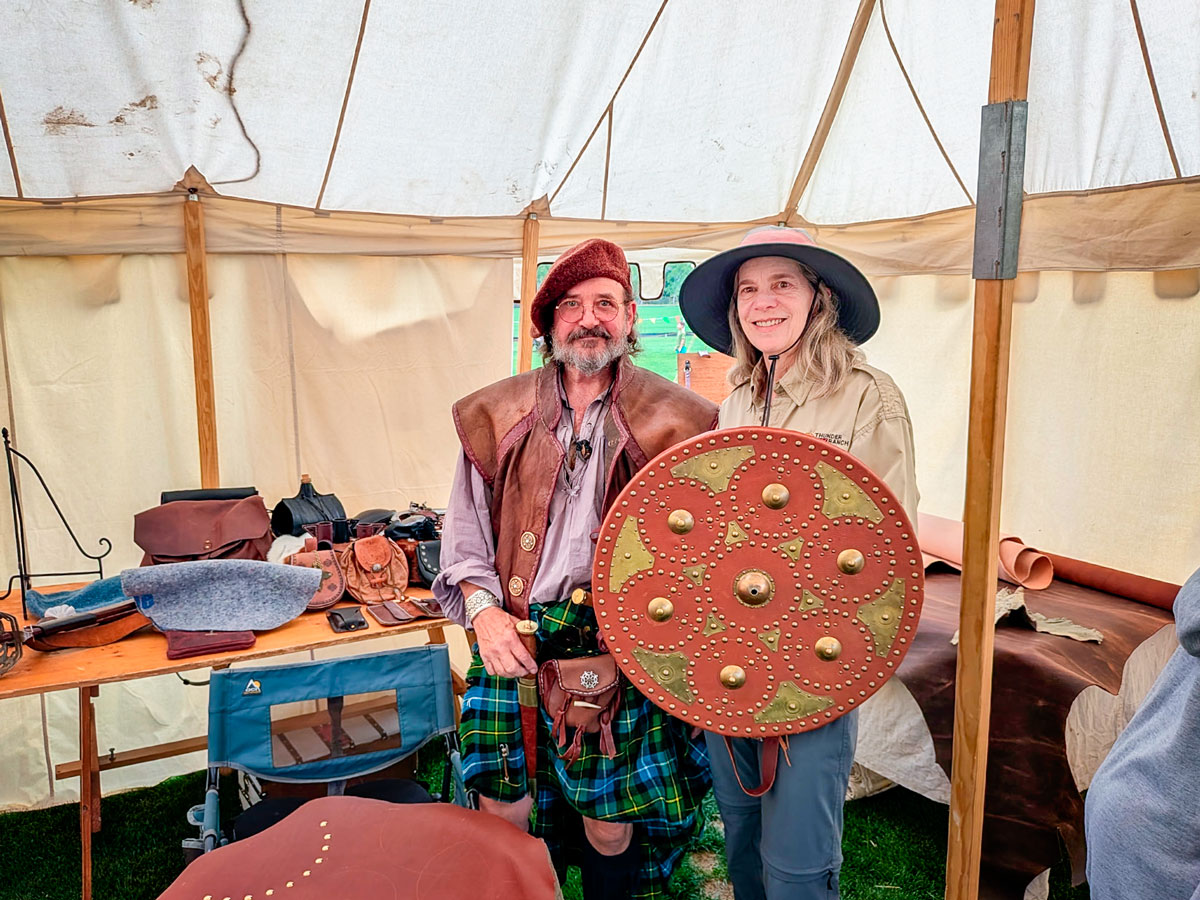 Kristin is pictured below with a craftsman who was demonstrating how to make a “targe,” a Scottish shield.