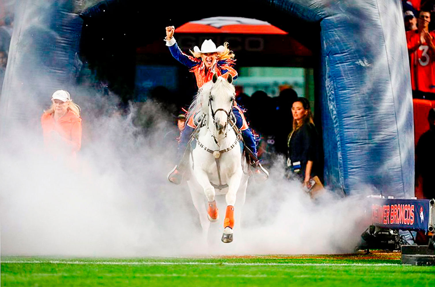Thunder, the Denver Broncos’ live Arabian mascot, kicks off each home game with a spirited entrance, leading the team onto the field. Off the field, Thunder helps support local charities, including Children’s Hospital and Denver Rescue Mission.
