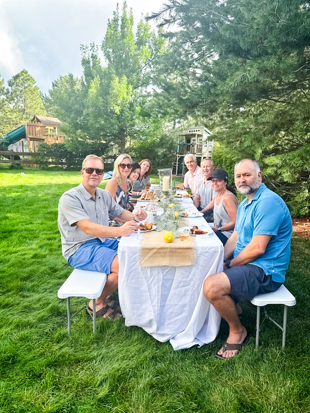 Jake and Megan Mathis hosted their second long table gathering for another group of neighbors for friendly conversations and great food.