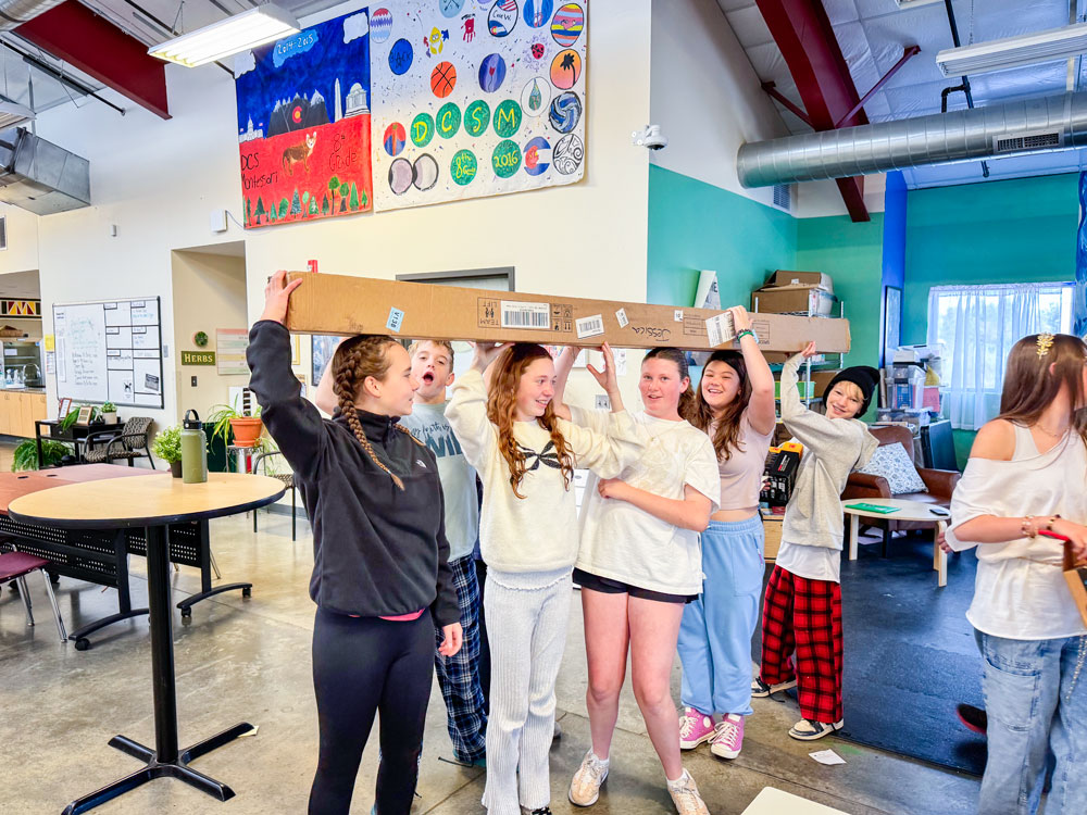 DCS Montessori seventh grade teacher Jessica Bunch’s students were excited to receive the smart control projector with retractable screen and speakers they were gifted as part of The Connection’s Complete the Classroom event.