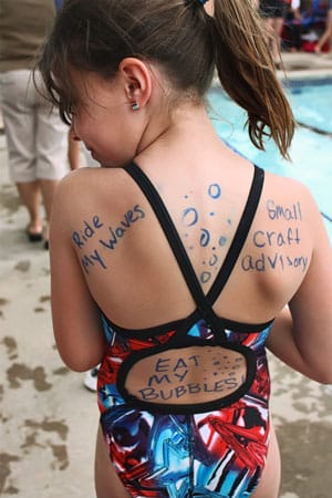 One hundred-twenty-five swimmers strong, the team was capped this year due to pool space. Head Coach Erik Goodrich did a great job, along with Assistant Coach Annalisa Vecchi from Safesplash and the team’s three junior coaches Gabe, Kate, and Kellie. More than 250 pizza coupons were handed out to kids who improved their times, courtesy of Little Italy restaurant.