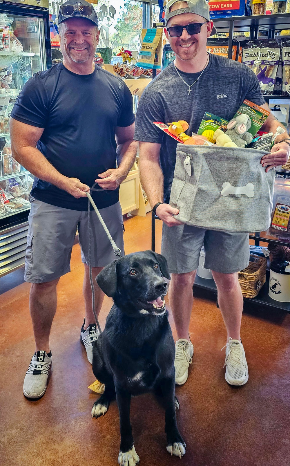 Last month, the winners of the Cutest Pet in the Pines contest stopped by The Pet Stuff Place in the Village Shops to pick up their prizes. Otis, the first-place winner, arrived to claim his basket and gift certificate with his family, Steve and Jake Armstrong, who grabbed Otis’s prize the day before his one-year rescue anniversary (pictured right). The runner-up winner, Honey the Syrian hamster, picked out a fruity treat. Honorable Mentions Norah, the Newfoundland, and Roman, the Bernese mountain dog, came by with their owners Tara and Corey Roberts (pictured below-right).