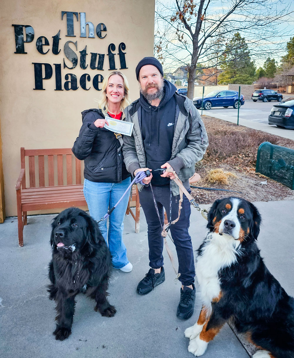 Last month, the winners of the Cutest Pet in the Pines contest stopped by The Pet Stuff Place in the Village Shops to pick up their prizes. Otis, the first-place winner, arrived to claim his basket and gift certificate with his family, Steve and Jake Armstrong, who grabbed Otis’s prize the day before his one-year rescue anniversary (pictured right). The runner-up winner, Honey the Syrian hamster, picked out a fruity treat. Honorable Mentions Norah, the Newfoundland, and Roman, the Bernese mountain dog, came by with their owners Tara and Corey Roberts (pictured below-right).