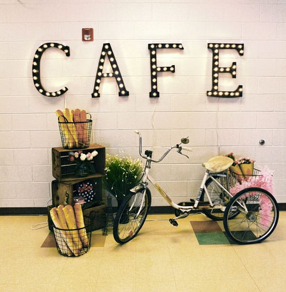 theme, including this sidewalk cafe in the cafeteria.