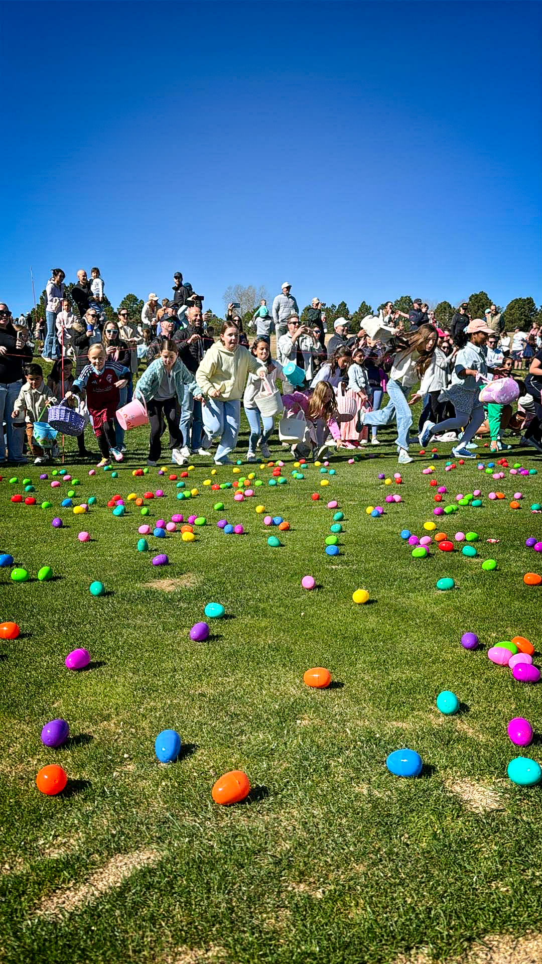 Families came out to Castle Pines for this year’s Egg Scramble, where kids in 3 age groups raced across the field filling baskets with plastic eggs, candy, and big smiles. With sunny skies, free donuts and Ziggi’s coffee, and lots of laughter, it was a lively morning for the whole community. Thanks to the Castle Pines Chamber of Commerce, AdventHealth Castle Rock, and The Ridge at Castle Pines North for another egg-cellent Spring event!