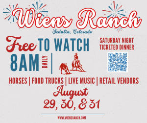 « All Events This event has passed. Cutting Horse Competition August 29 - August 31 « Jazz in the Park Fitness Fridays » Add to calendar Google Calendar iCalendar Outlook 365 Outlook Live Details Start: August 29 End: August 31 Event Categories: CO, Denver, Douglas County, Educational, Family event, Fun, Horses, Live Music, Outdoors Event Tags:Cutting Horse Competition at Wiens Ranch, Cutting Horse Competition in Colorado, Cutting Horse Competition in Douglas County, Family events in Colorado, Horse Events in Sedalia, Horse events in Colorado, Wiens Ranch events Website: https://www.wiensranch.com/ Venue Wiens Ranch 5567 South Perry Park Road Sedalia, CO 80135 + Google Map Related Events Tree Lighting Celebration December 5 @ 5:00 pm - 7:00 pm BRE Winter Wonderland Market December 6 @ 10:00 am - 3:00 pm Santa in the Pines December 6 @ 11:00 am - 2:00 pm
