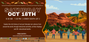 Join us for International Archaeology Day on Saturday, October 18th, 2025 from 8:30 AM to 1:30 PM in the Lower South Lot #2 at Red Rocks Park and Amphitheatre in Morrison, Colorado.