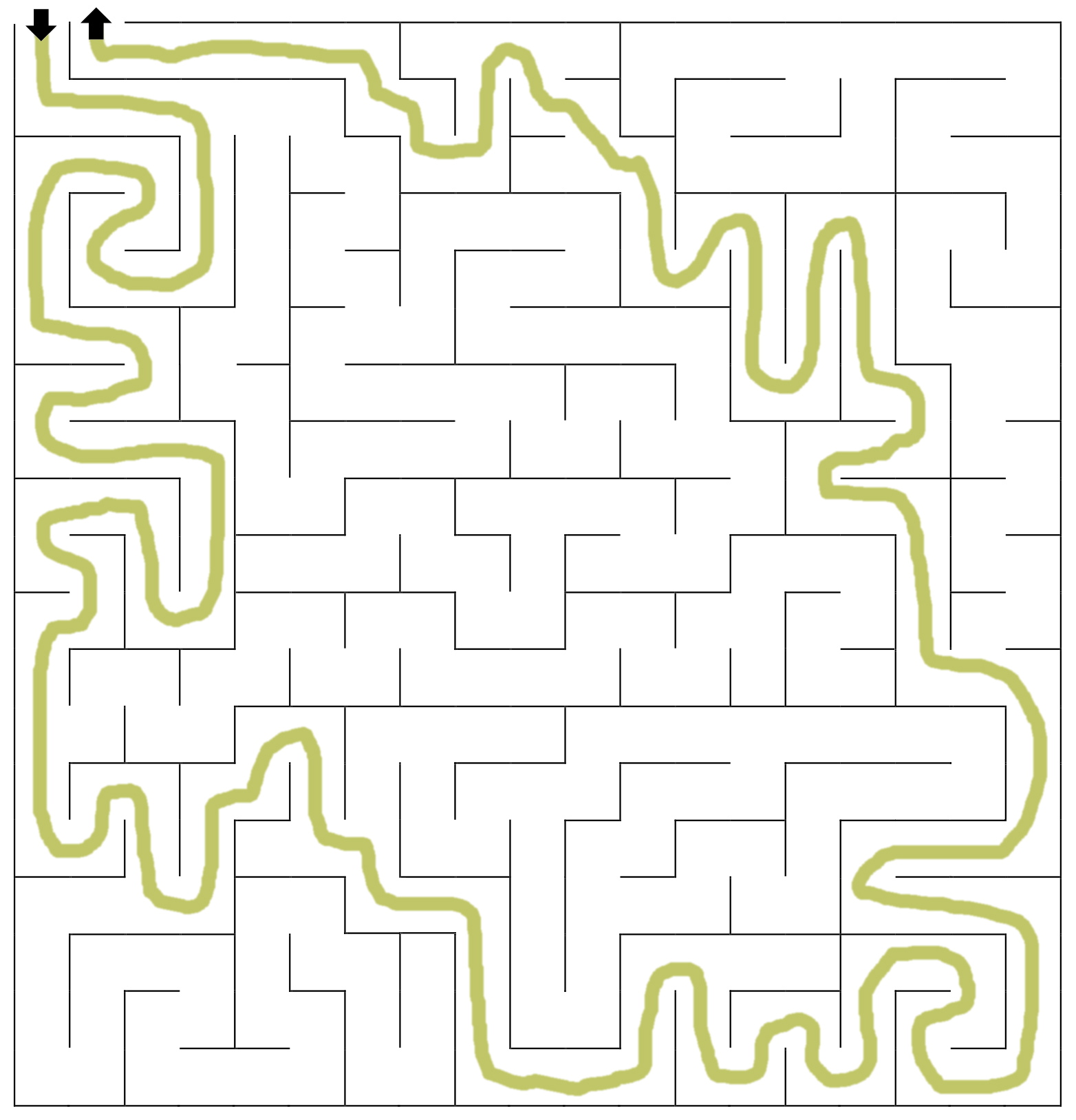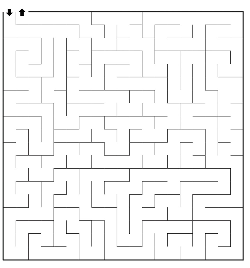 Find your way through this maze, starting at the entrance arrow that points into the maze and reaching the exit arrow that points out of the maze.