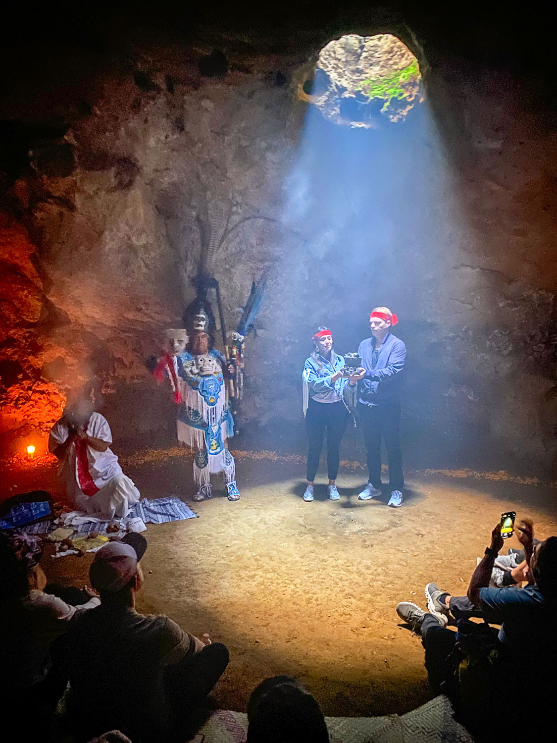 Jo and Mark Brinkerhoff participating in a hummingbird fertility ceremony in Mexico.