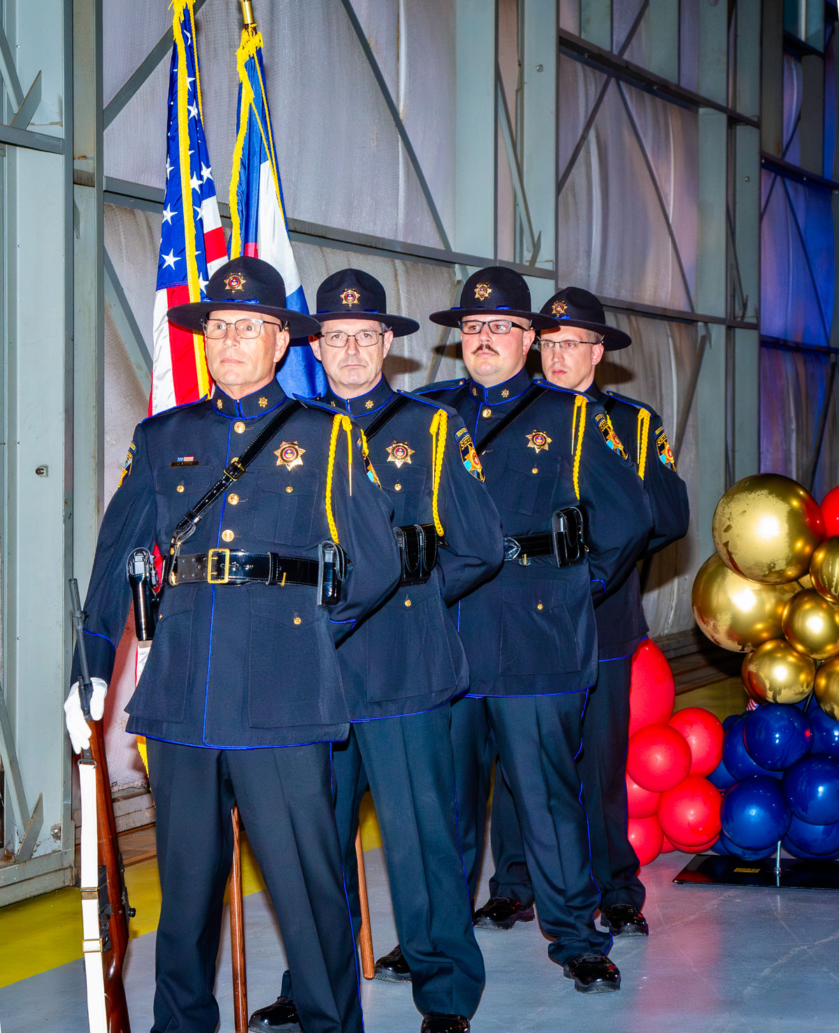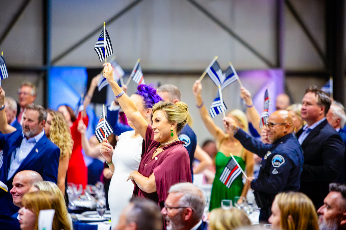 A ceremonious bagpipe and drum procession led guests into the jet hangar and continued with a spirited live auction where former Denver Bronco Special Teams Captain David Bruton tossed out a signed Super Bowl 50 football and guests bid on unique experiences, including a ride in the Douglas County firefighting helicopter, day in the life of a 911 fire dispatcher, and inside operations of the DCSO K9 Unit and Bomb Squad, among others.
