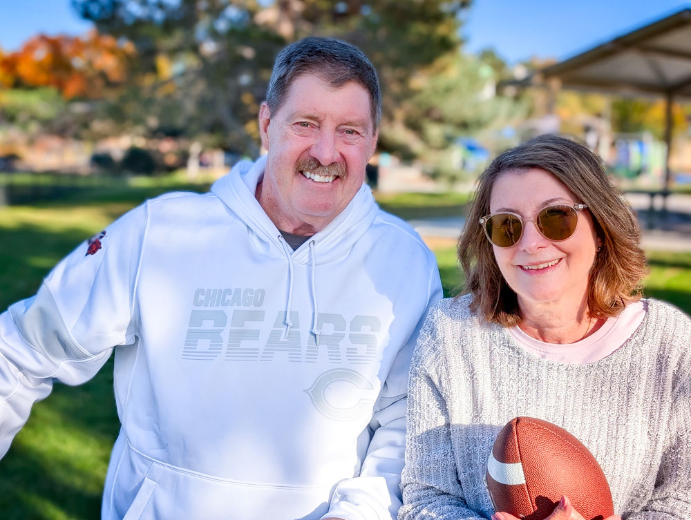 Rusty and Donna Walker playing football at a park in Englewood in fall 2024.