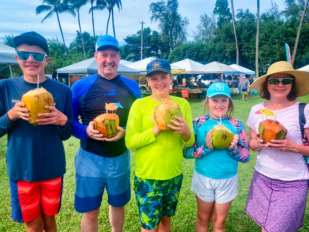 Rusty and Donna Walker embracing the culture while on vacation in Kauai last September with their grandkids: Left to right: Foster (15), Theodore (13) and Evangeline (9).