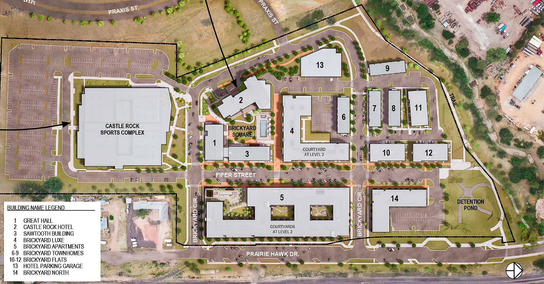 A proposed mixed-use development near downtown Castle Rock is in the works. Called The Brickyard, the urban renewal area will include a four-star hotel, six new restaurants, a state-of-the-art recreation center, an entertainment venue, plus 500 homes, primarily apartments and town homes.