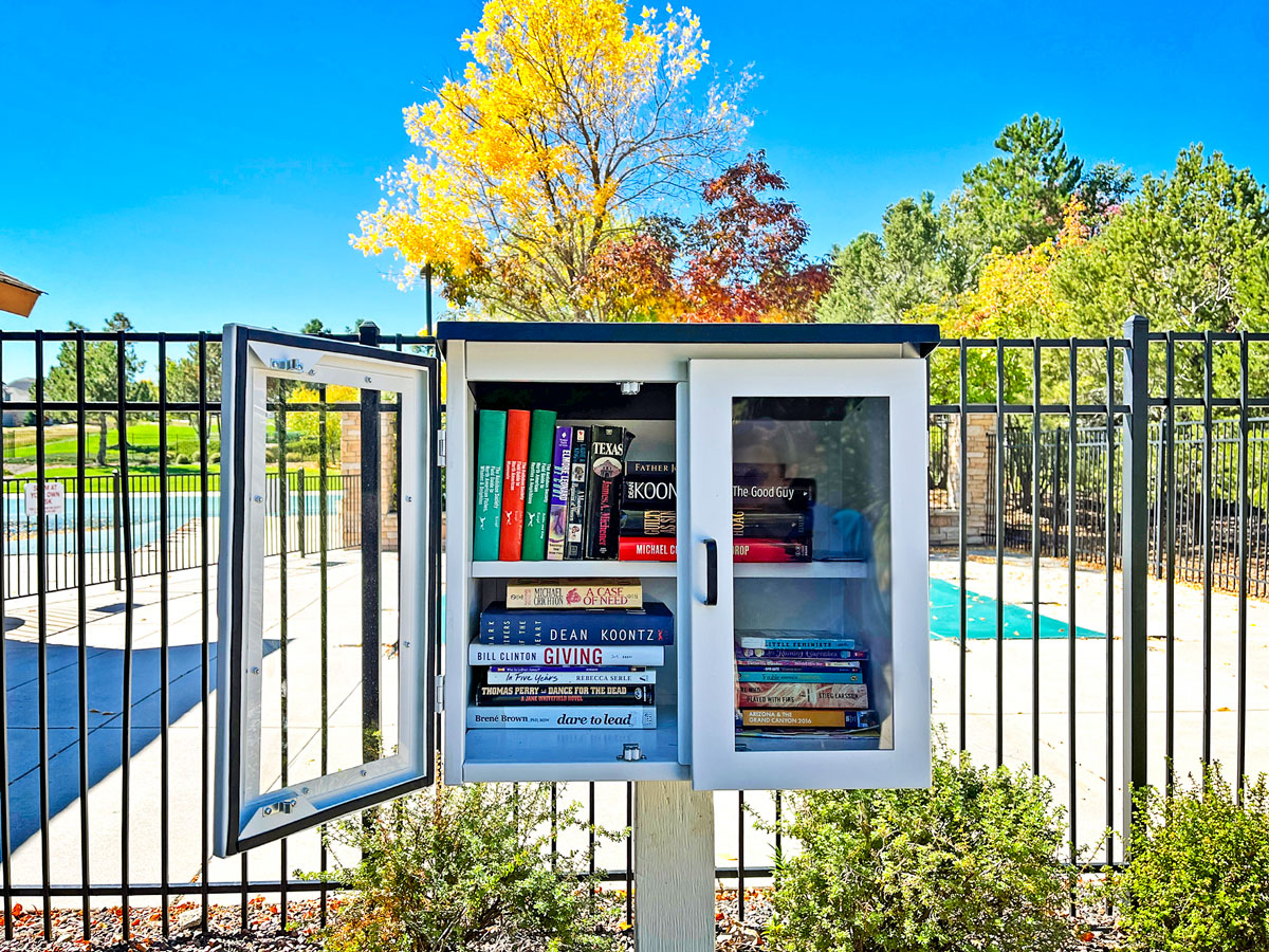 In early September, the social committee of the Castle Pines North II HOA installed a new outdoor book-sharing box. The committee members, Rachel Slade (chair), Sally Bowman, Delta Stein, Lisa Lane and Karen Kennedy, added the little white community library just outside the gated entry for the HOA pool at the corner of Brambleridge Lane and Monarch Boulevard.