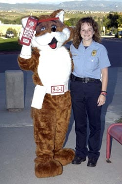 Red E. Fox (left) and Dispatcher with Cherie Abbott of DCSO (Photo by DCSO.) by Terri Wiebold The Douglas County Sheriff’s Office (DCSO) has developed a new 911 education program…