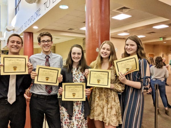Read MoreSophomores (left to right) Grant DeRose, Tanner Leonard, Maddy Merritt, Reese Titensor and Kayla Mash smiled after being inducted into the Science National Honors Society of Rock Canyon High School…