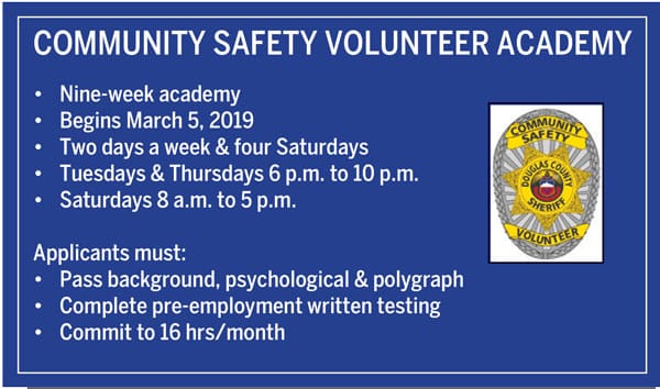 Read MoreInformation provided by DCSO The Douglas County Sheriff’s Office (DCSO) is holding its 14th annual Community Safety Volunteer (CSV) Academy to train citizens who have the time, talent and desire…