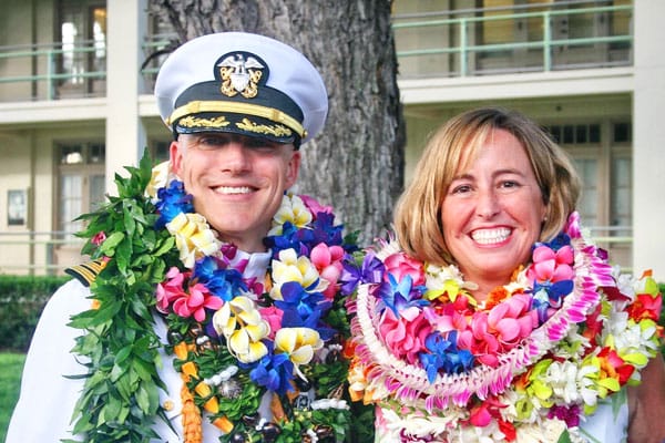 James and Melissa Coudeyras at James’ retirement ceremony on Pearl Harbor Naval base in Oahu, Hawaii. James served for 20 years and one day with much of that time as…