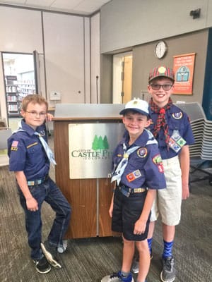 Caption and photo by Terri Wiebold Boy Scout Troop 826 led the Castle Pines City Council in the Pledge of Allegiance at the council meeting on May 8. Pictured left…