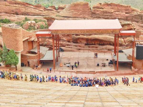 With bagpipe music playing, participants of the 9/11 Memorial Stair Climb at Red Rocks walked nine laps around the amphitheater which is the equivalent of the 110 stories of the…