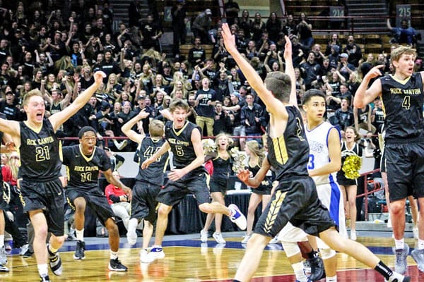 The RCHS basketball team after making the buzzer beater win against Grandview High School in the Great Eight competition, which took them to the Final Four for the first time…