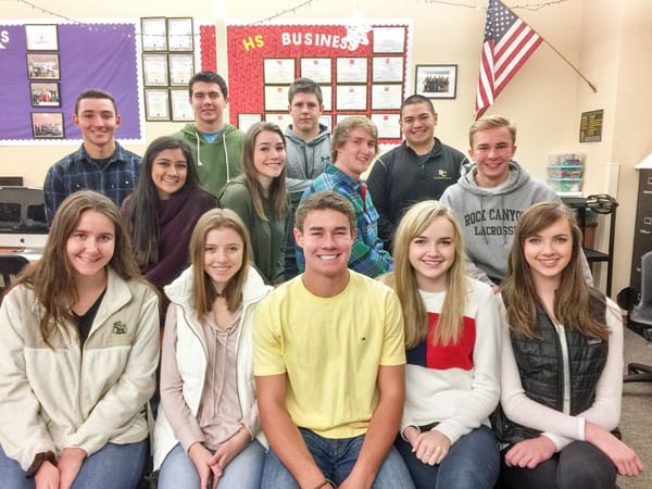 Some of the students in the RCHS School of Business program who have created a business, Canyon Containers, as their senior project. They will be donating proceeds of their water…
