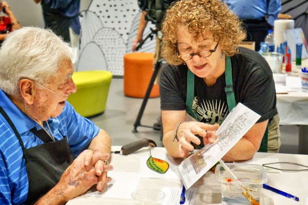 Read MoreSculptor Kris Kollasch explains the tree sculpture project to a MorningStar at RidgeGate resident, who is creating his own leaf for the tree. Douglas County Libraries in Lone Tree hosted…