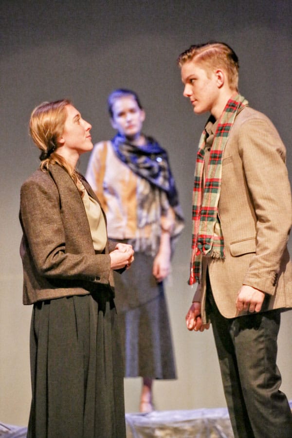 Pictured left to right: Jenna Snyder, Isabella Dempsey and Logan Bakken performing the play “Women of Lockerbie,” which was chosen to be presented on the main stage at the International…