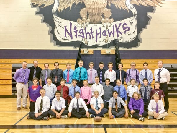 The eighth grade Rocky Heights Middle School football champions switch out football pads for ties as they pose for a yearbook photo. The eighth graders made Douglas County history when…