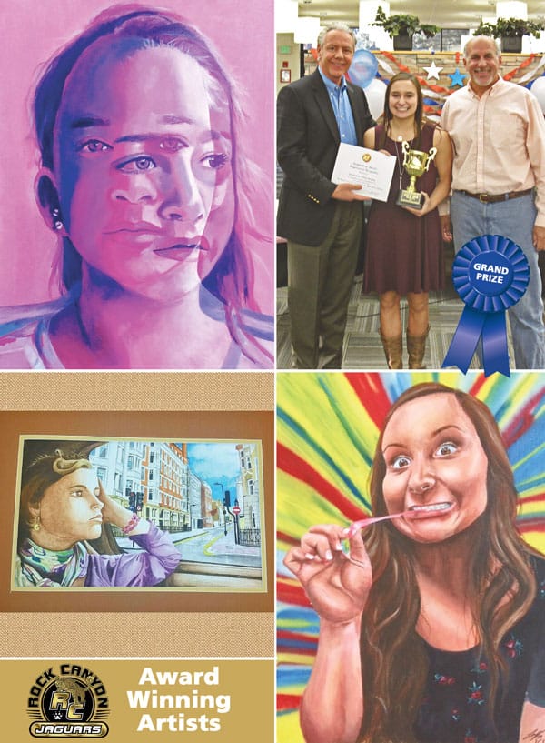 Read MoreClockwise from top left, Grand Prize winner Ashley Bradley’s double exposure portrait painted with acrylics. Grand Prize winner Ashley Bradley with Congressman Ken Buck (left) and RCHS art teacher Drew…