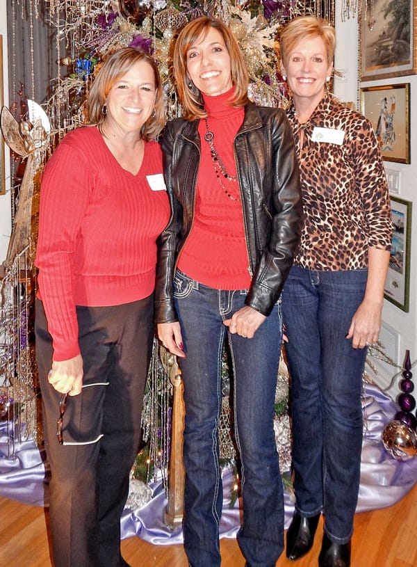 Read MoreNew Womenade board member Mary MacDonald (top left) and friends Suzanne Rizley (center) and Dawn Carter (right) in front of the Gatsby-themed tree. Above right and at left two…