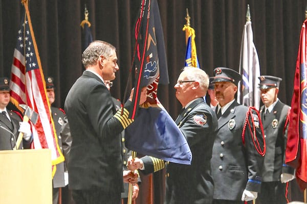 Read MoreAs part of the Change of Command Ceremony, former Chief Qualman (right) presents Chief Baker (left) with the South Metro Fire Rescue Authority flag. Submitted by South Metro Fire Rescue…