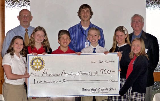 Read MoreAmerican Academy Ghana Club board members visited with the Rotary Club of Castle Pines on January 16. The Rotary granted the club $500 to help grow the program. Back Row:…