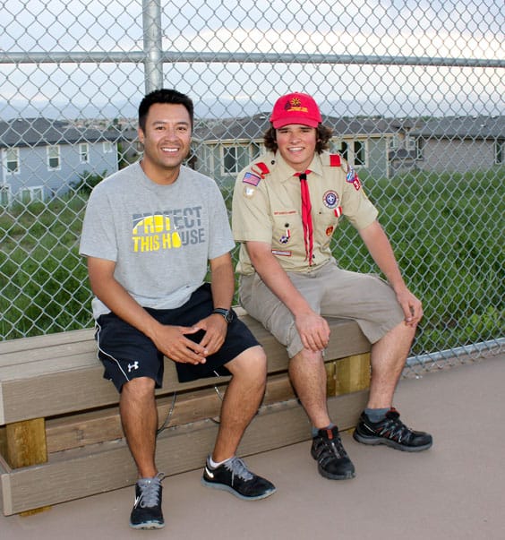 Read MoreRock Canyon High School’s tennis coach Manuel Gonzalez (left) and Eagle Scout Eric Stopps sit on one of the five new benches Stopps constructed for the school. By Elizabeth Wood West;…