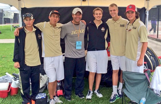 Read MoreBefore their first matches of the day, players Andrew Merone, Mike Ryazantsev, Michael Shapiro, Eric Stopps, and Matt Givin pose with Coach Manuel Gonzales for a photo at the state…