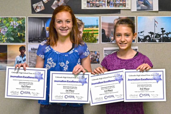Read MoreSeventh grade students Taylor Hein (left) and Kaylee Sandoval (right) were surprised and thrilled to receive an award for their yearbook contributions. “We realized, that whoa! This is a big…