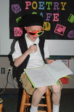 Read MoreArticle and photo by Lisa Crockett Second grader Cruz Miller reads original poetry at Timber Trail Elementary’s Poetry Café last month. Miller and his classmates, dressed as beatnik poets and…