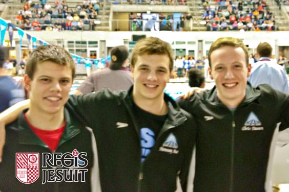 Read MoreRegis Jesuit students Erik Biernat (left), Hennessey Stuart (center) and Christopher Dawson (right), enjoyed the opportunity to swim with the best swimmer from around the country at the Junior…
