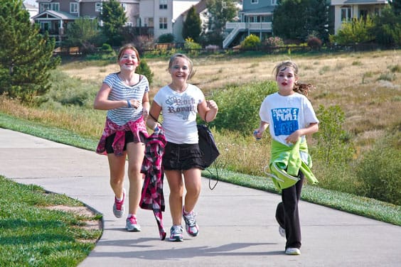 Read MoreAudience of One, a community theater group, sponsored a 5K run to benefit an Aurora shooting victim. Young actors (from left) Jordan Rickerd, Taylor Muckel and Alaina Spangenberger cross the finish line…